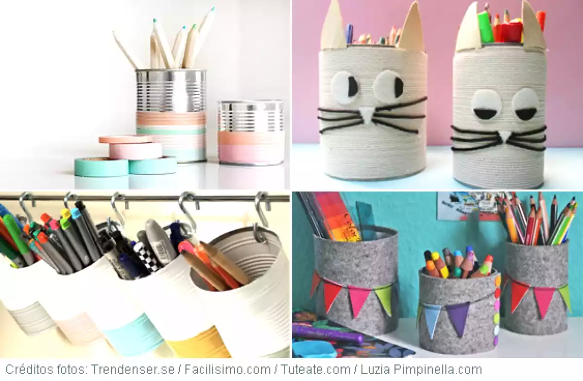 Hazte con una lata de tamaño adecuado. Una de tomate, de fabada, de piña, etc. nos puede valer. Una vez que esté vacía, simplemente lávala y quítale las etiquetas. Lo más simple será pintarlas con spray. Pero puedes utilizar todo lo que se te ocurra: pintura acrílica, forrarlas con un retal de tela que tengas por casa, enrollarlas con cuerda, con papel pintado o incluso forrarla con un bonito dibujo que pueden hacer los más peques. Lo importante es que los niños y niñas lo decoren a su gusto desarrollando así toda su creatividad.