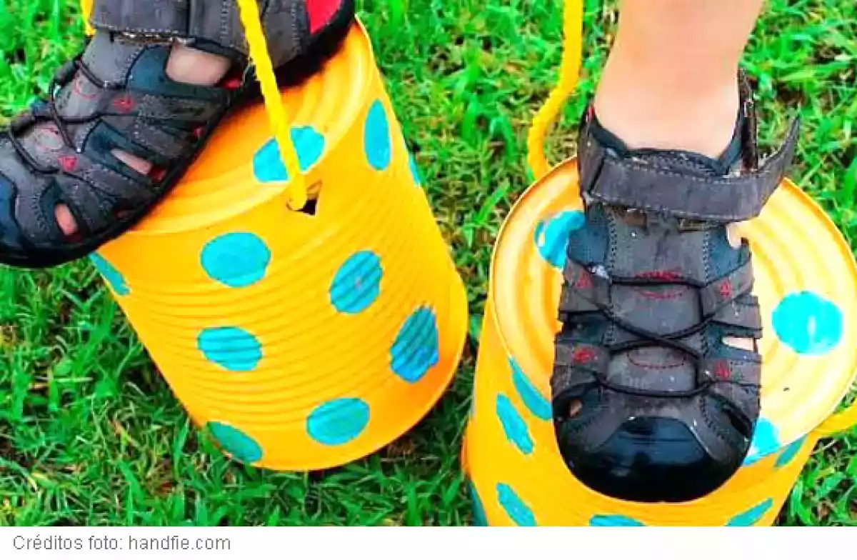 Otra actividad muy divertida para hacer con los peques son: Los zancos caseros. Caminar sobre ellos intentado guardar el equilibrio les dará horas de diversión. Asegúrate que las latas son grandes y resistentes. Lo suficiente para que aguanten incluso tu peso porque no vas a poder resistir volver a tu infancia.