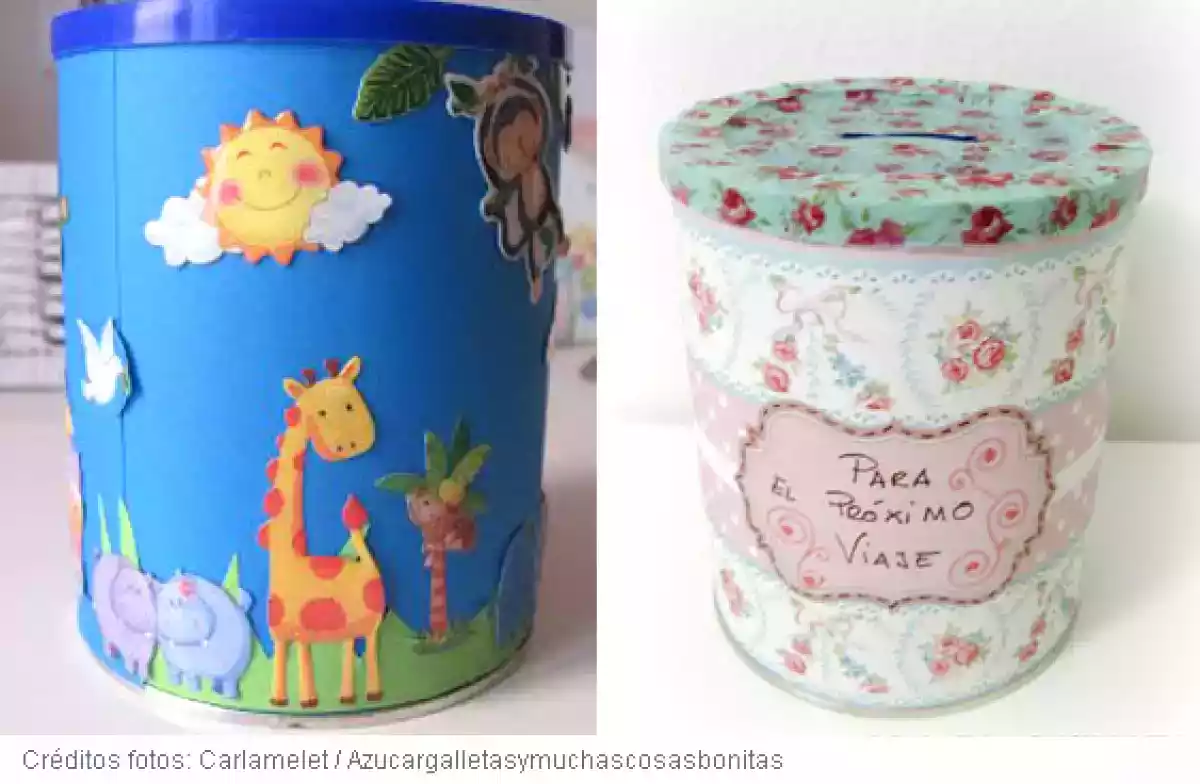cacao, leche en polvo o cafés solubles. Están son estupendas para hacer unas bonitas huchas. Puedes forrarlas con una cartulina y recortar algunos motivos impresos para que queden tan bonitas como las de la foto. O usar goma eva o fieltros. Hazles una rajita en la tapa y disfruta ahorrando mientras pensáis en que invertiréis el dinero una vez que el confinamiento llegue a su fin.
