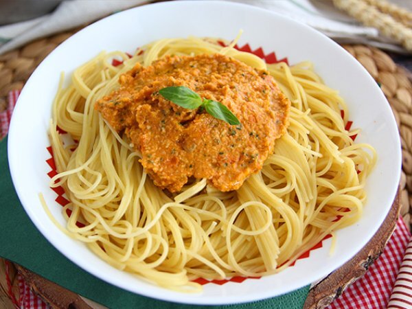 Originario de la región de Calabria, este pesto se distingue por el uso de pimientos rojos asados, que le aportan un dulzor picante y ahumado. El pesto al estilo calabrés es una excelente opción para conseguir un plato de pasta cremoso. Ideal si lo acompañamos con queso ricotta o requesón :-)