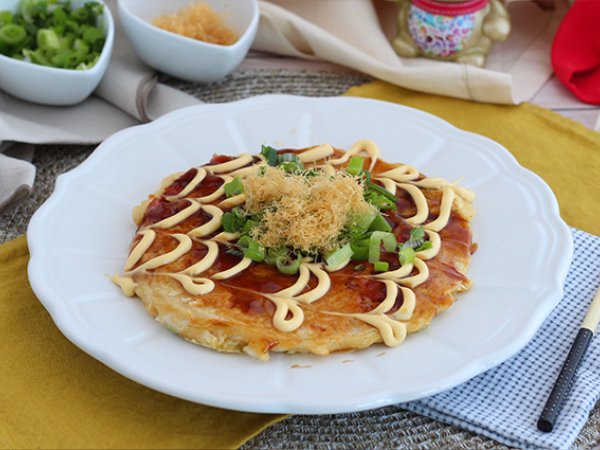 El okonomiyaki, un plato que baila entre la tortilla, el pancake y la pizza en versión oriental, es una de las comidas callejeras japonesas por excelencia: un plato versátil e infinitamente personalizable. Dependiendo de la región, se puede encontrar okonomiyaki con ingredientes muy diferentes: desde los más tradicionales, cocinadas con cerdo y col, hasta versiones más elaboradas con gambas, pulpo o queso. La base es siempre la misma: un rebozado de harina, huevo y col, pero el condimento se deja a la imaginación de cada cocinero. ¡Prueba nuestra versión en casa!