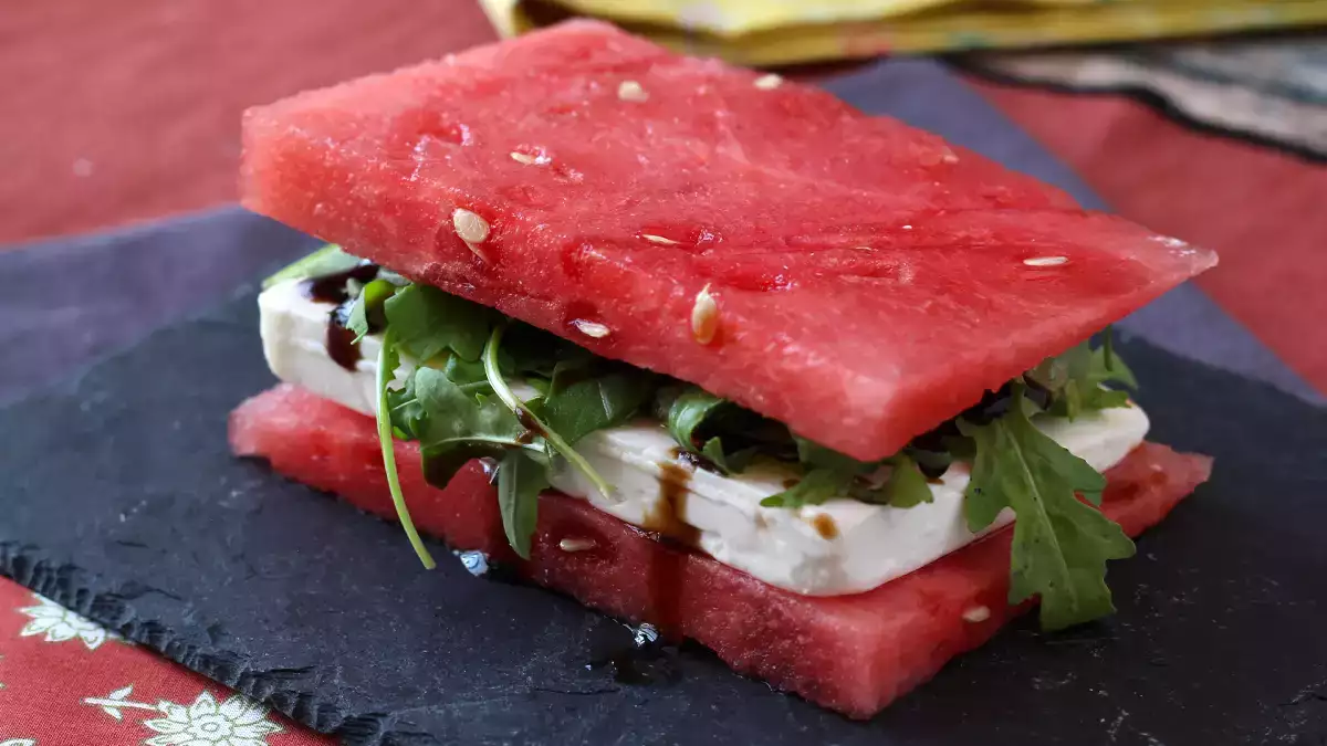 Dos rodajas de sandía haciendo de pan y un relleno salado lleno de frescura: esta receta viral nacida en redes sociales se ha convertido en uno de los bocados más comentados del verano.