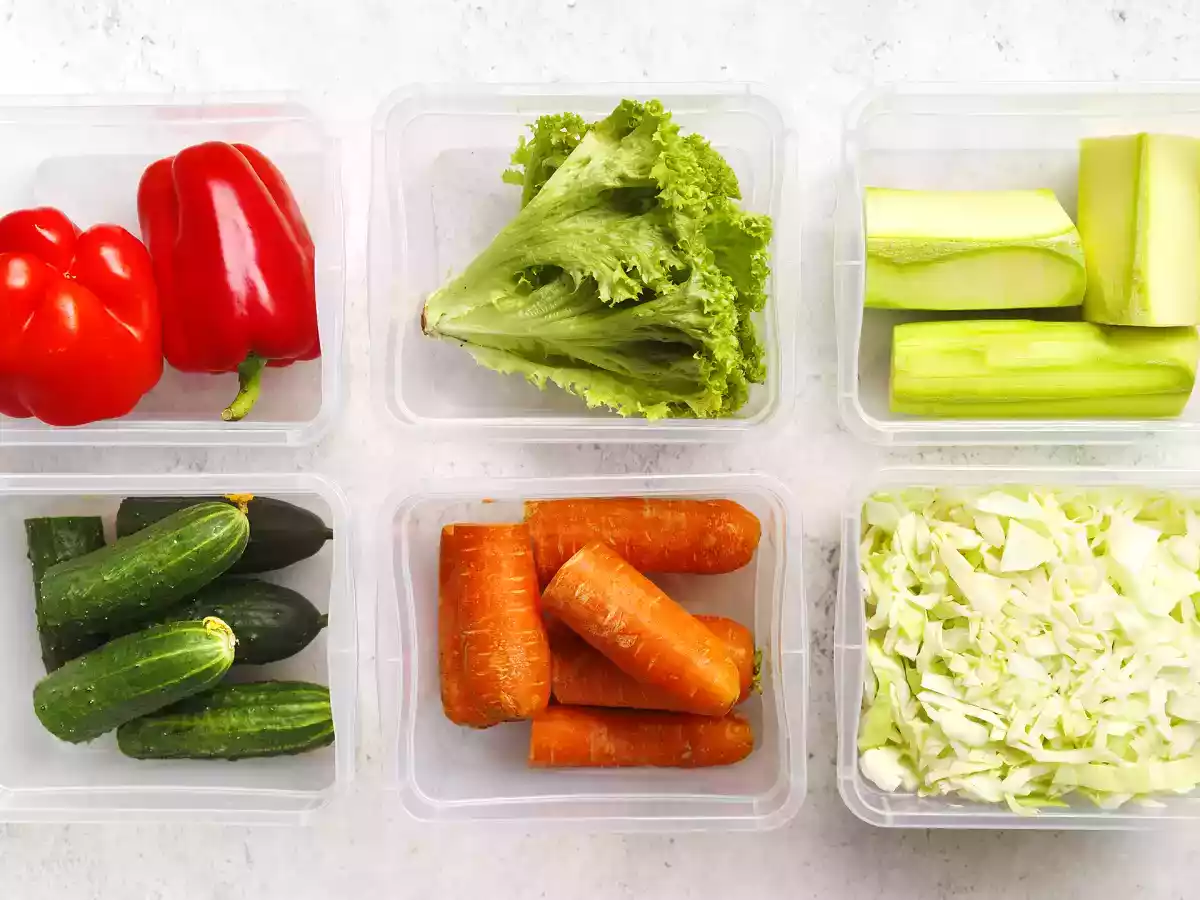 - Frutas y verduras: frutas y verduras enteras y firmes pueden guardarse en recipientes de plástico, aunque es fundamental lavarlas bien antes de almacenarlas. Las frutas más delicadas o de piel fina podrían verse afectadas por el contacto directo con el plástico.