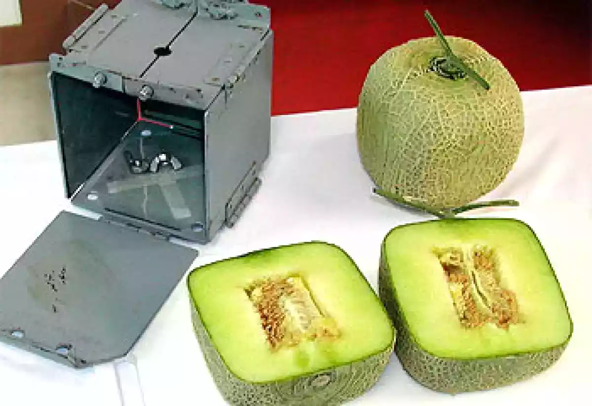 Fue así como empezaron a verse naranjas, manzanas, tomates y melones cuadrados, pepinos con forma de corazón y estrella, sandías con forma de pirámide, naranjas con forma pentagonal...