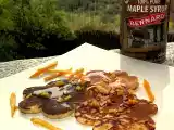 Tortitas con naranja confitada y jarabe de arce (maple syrup).