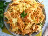 Es la prima lejana de lo que nosotros conocemos como ensaladilla rusa. Esta ensalada fría, encuentra su origen en Portugal y es muy popular como acompañamiento en las comidas y cenas navideñas de Brasil. A diferencia de la española, se suele servir con pollo y con patatas paja que les confiere una textura crujiente y muy interesante. Como se come fría y se puede preparar con antelación resulta un plato muy socorrido cuando se nos presenta una comida en grupo o si nos la tenemos que llevar en un táper a la escuela, la oficina o de picnic. Receta foto --> Ensalada brasileña -Salpicão-