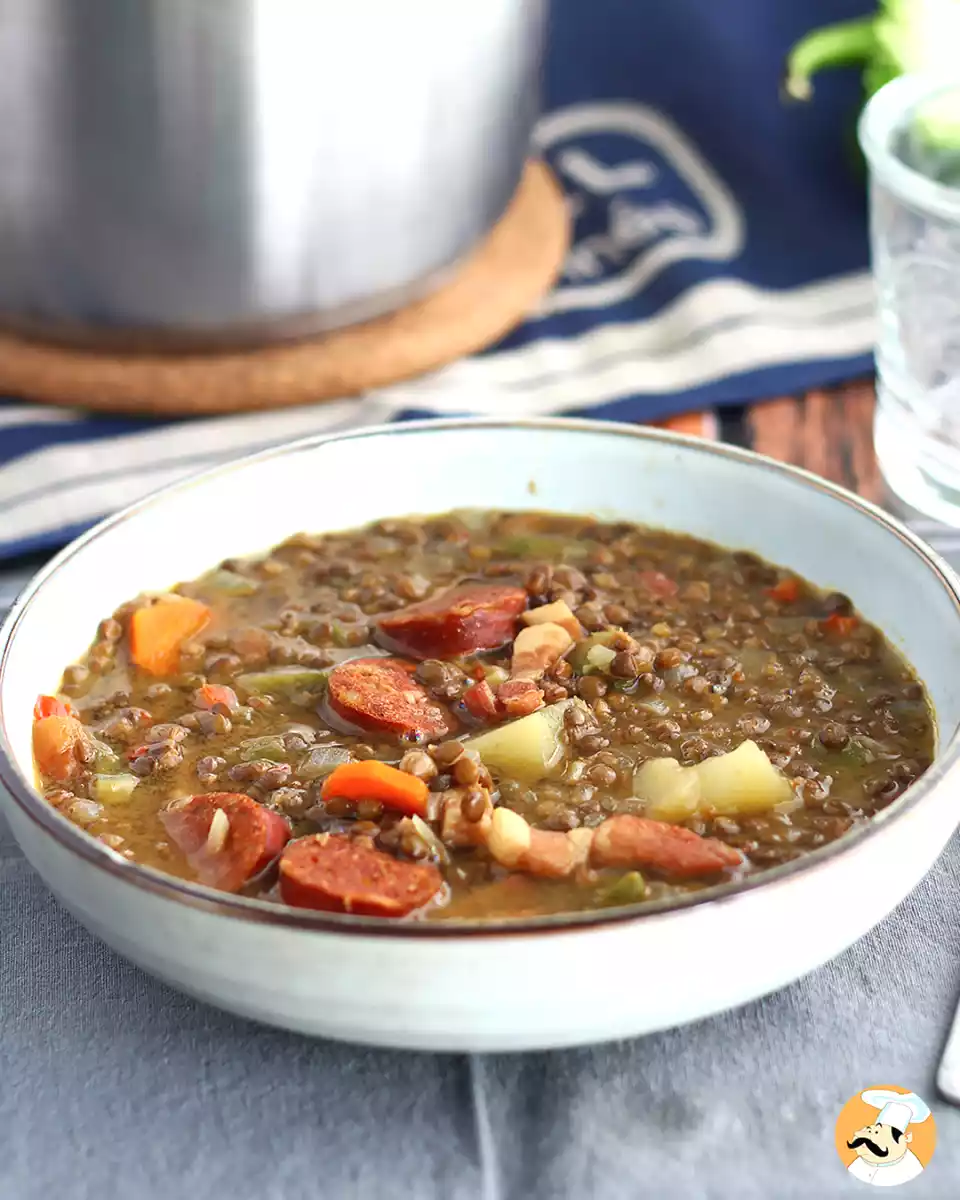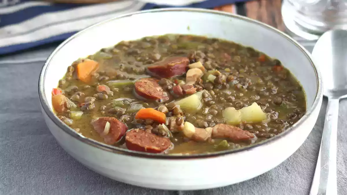 Un plato humilde pero lleno de matices, donde las lentejas se cocinan con chorizo, pimiento y laurel, resultando en un guiso espeso y nutritivo que ha pasado de generación en generación en la cocina española.