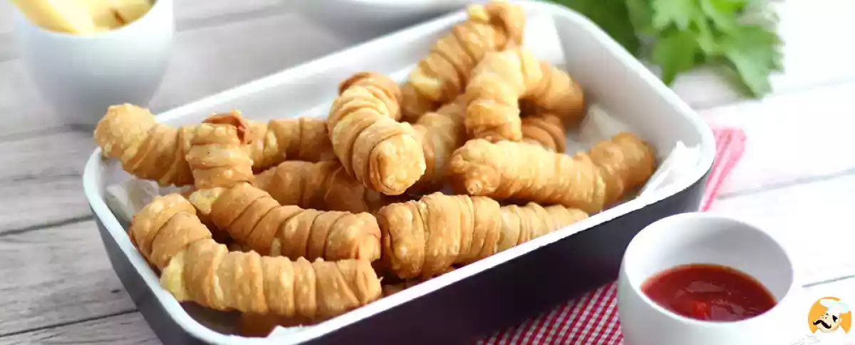 Para un aperitivo de bocado más refinado y elegante te tentamos con este crujiente de vieiras. La mezcla de texturas y sabores es realmente remarcable. Para hacerlo usaremos una base crujiente de masa brick y un relleno de puerros, vieiras, piñones y limón. ¡Realmente delicioso!