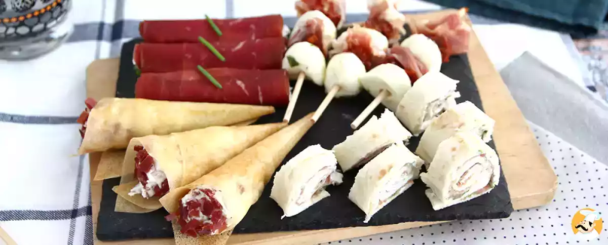 Una plancha de embutidos está muy bien a la hora del picoteo pero te proponemos poner en valor unas “simples” chacinas. Saca el salchichón, el lomo, el jamón cocido… con un poco de imaginación vamos a darle un toque más sofisticado, vistoso y apetecible.