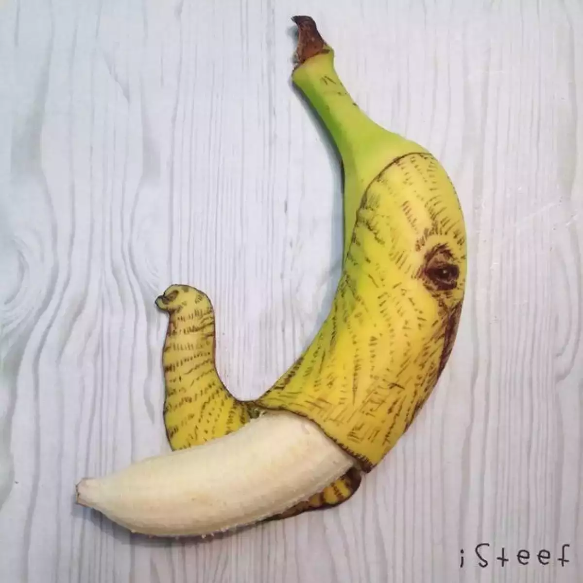 Hay personas con una creatividad desbordante, y una de ellas es el artista Stephan Brusche quien ve mucho más que una fruta en un plátano. Aprovechando la piel y la pulpa del plátano, es capaz de crear increíbles obras de arte, beneficiándose también de los colores que ofrecen los plátanos de manera natural.
