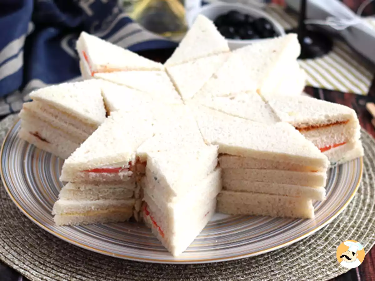 Un centro de mesa que también se come. Haz unos sándwiches con el relleno que más te guste (sobrasada, paté, queso crema, tapenade...), luego, lo cortamos en forma X, obteniendo 4 triángulos pequeños. Luego solo queda montar los triángulos para conseguir darle forma de estrella. Con el paso a paso de nuestra receta podrás ver cómo conseguirlo de forma muy visual gracias a la videoreceta y las fotos. Asegúrate de colocar los sándwiches con diferentes sabores de forma aleatoria para que cada comensal se sorprenda al coger uno. Receta foto: Pan sorpresa estrella origami