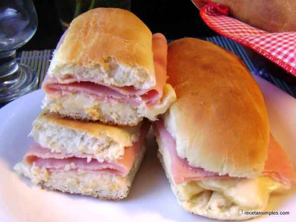 Este pan es casi igual que la masa de pan de hamburguesa pero sin huevo. Se podría decir que es casi como un bollito de leche. Puedes comerlo como hot dog, o relleno de jamón york y queso, embutido... Infinitas son las opciones :D