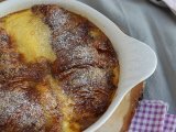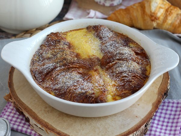 La rabanada, una especie de torrija, y es un clásico tanto en Portugal como en Brasil. Se hace con pan duro mojado en leche o vino, luego frito y espolvoreado con azúcar y canela. Actualmente se realizan versiones de esta receta en las que se utilizan bollería o pan de molde. Aquí te mostramos una versión deliciosa hecha con croissant. Además, va horneada en lugar de frita.