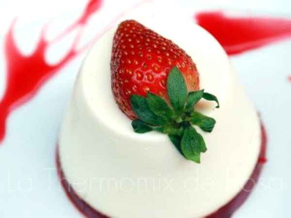 Panna cotta con gelatina de frambuesa y fresas en thermomix