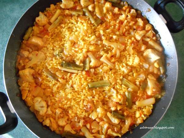 Arroz con coliflor, bacalao y garbanzos