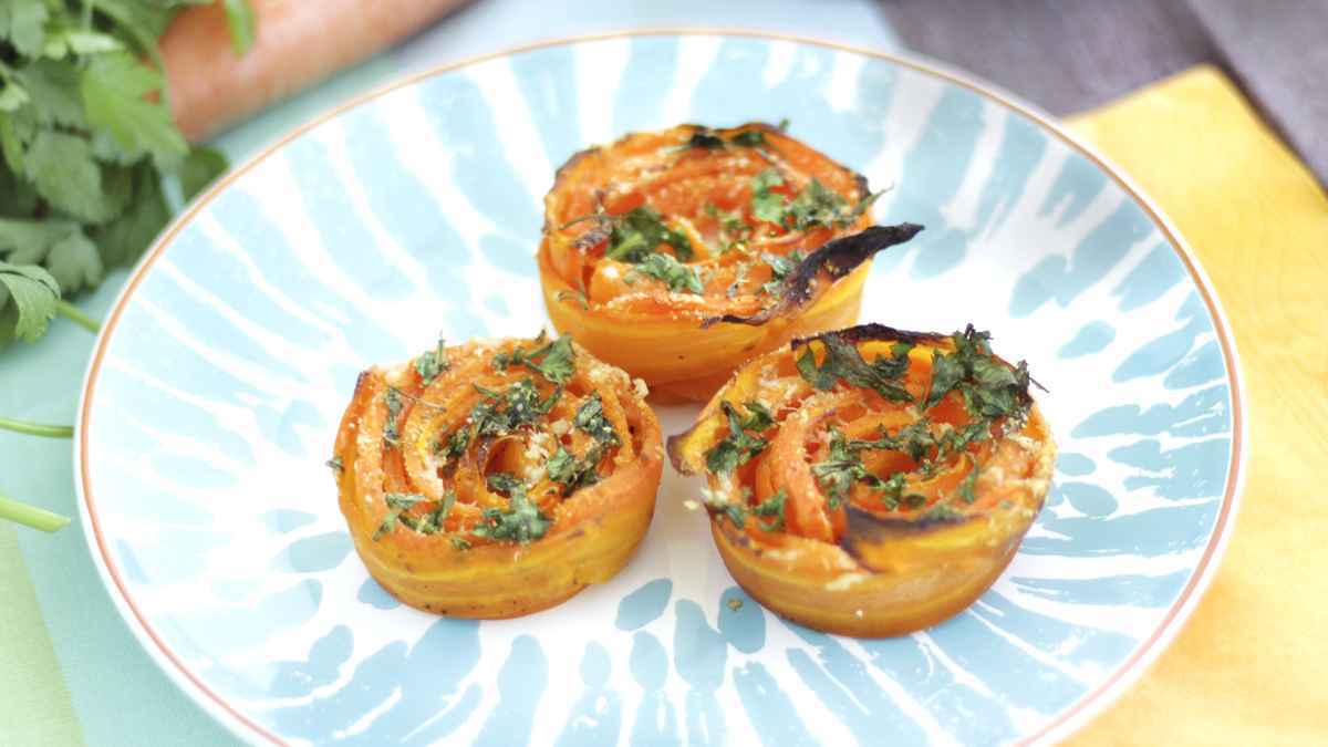 Si buscas una receta ligera con zanahorias, prueba estas rosas de zanahoria y parmesano.