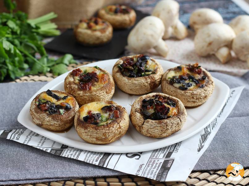 7. Champiñones rellenos con mozzarella, aceitunas y tomates secos