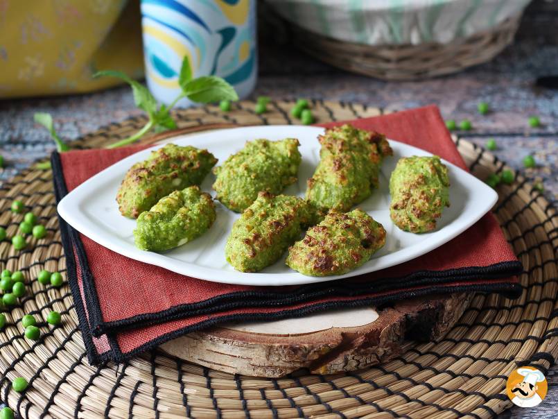 Receta completa >> Buñuelos de guisantes, queso feta y menta