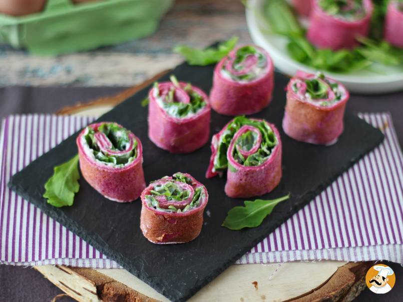 Receta completa >> Rollitos de crepes de remolacha rellenos
