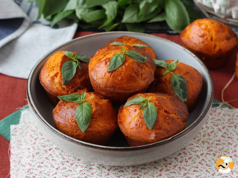 ¡Una delicia que se derrite en la boca! Estos muffins o magdalenas saladas tienen una textura húmeda y sabrosa, gracias a su corazón de mozzarella y su intenso sabor a tomate. Resultado: un aperitivo irresistible, rápido y fácil de preparar, ¡ideal para cualquier ocasión!