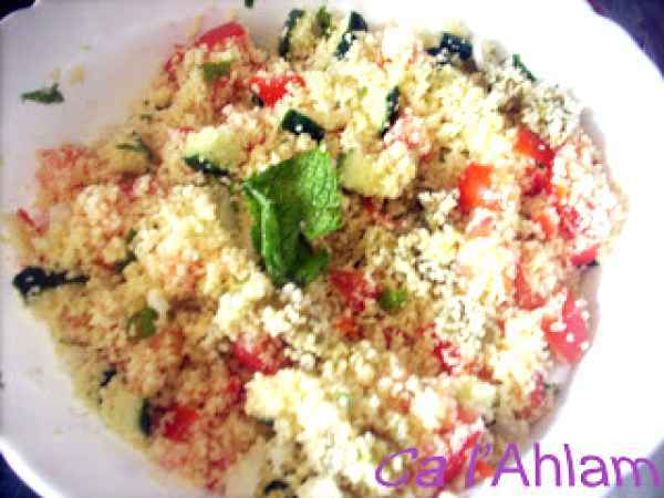 Una ensalada hecha con Cous-cous, es una ensalada de pasta de sémola cocida y sin dudarlo podemos decir que está deliciosa pero no es nuestra.
