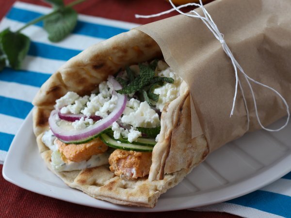 Para los amantes del queso y la cocina vegetariana, ¡los gyros de halloumi harán que te derritas! El halloumi, (queso originario de chipre) de textura firme y salada, se asa a la parrilla hasta que queda dorado y crujiente y se mezcla con un poco de miel lo que lo convierte en la combinación agridulce perfecta para los gyros :-)