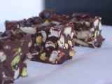 Barritas de chocolate crujiente con malvaviscos, avellanas y pistachos