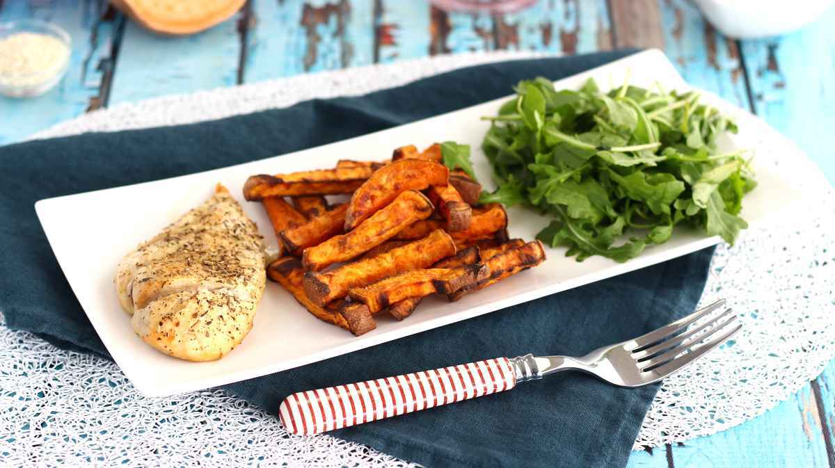Batata frita al horno (con pollo)