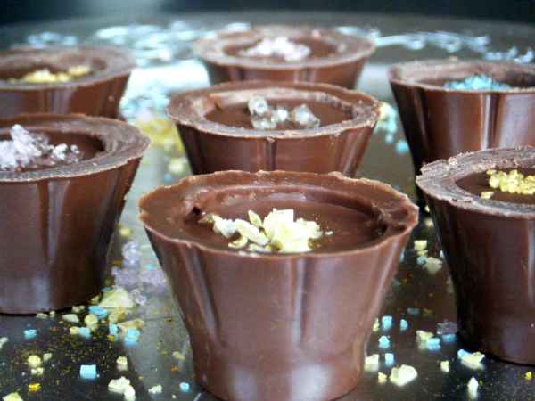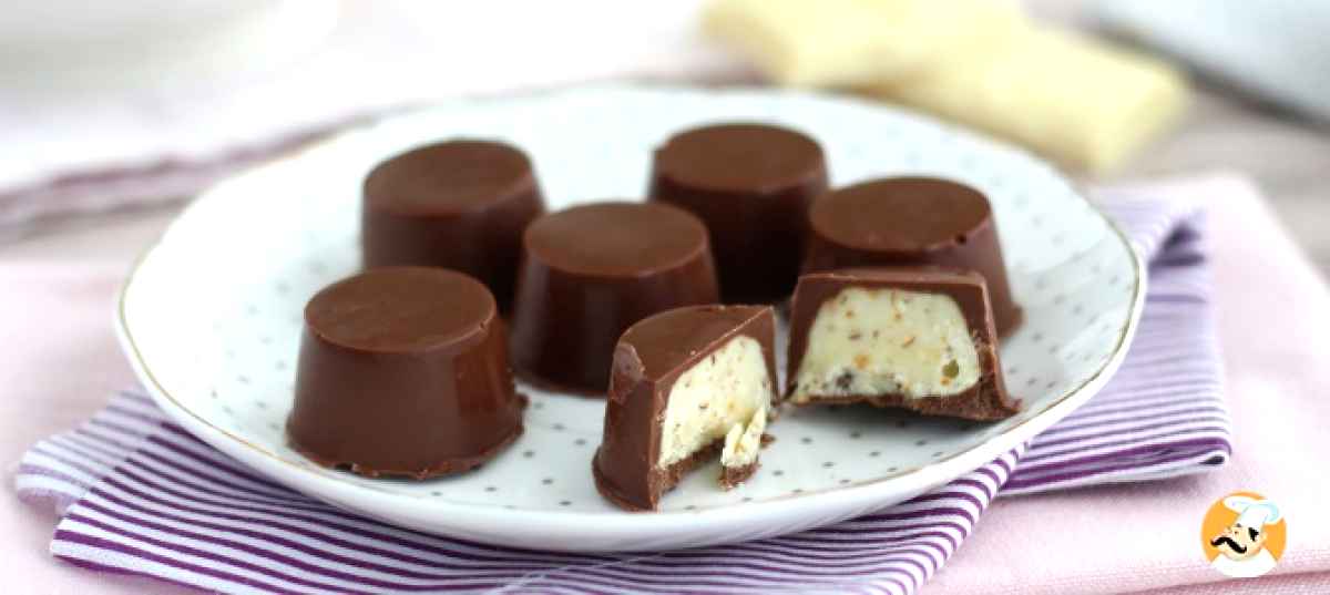 Ventaja, la receta casera es mejor que industrial. Sin contar que a la mayoría le gusta el chocolate! De chocolate negro, chocolate con leche o chocolate blanco. Además son muy fáciles de elaborar :) Derretimos el chocolate, pintamos los moldes, ponemos el relleno que deseamos y cubrir con más chocolate. Hasta una cubitera de hacer hielos te puede servir como molde!