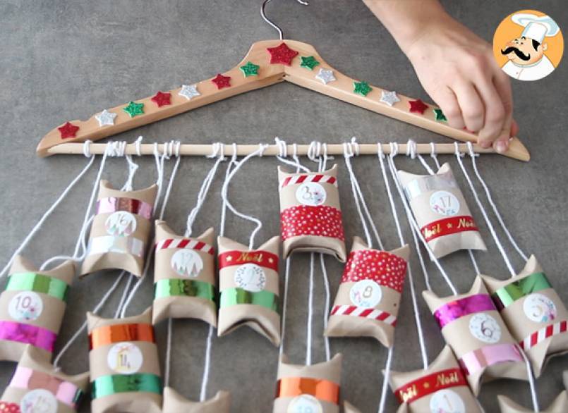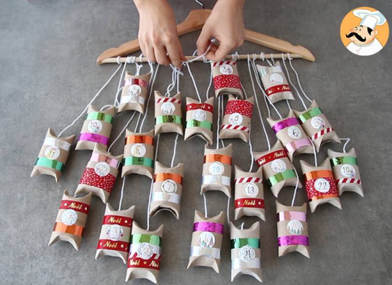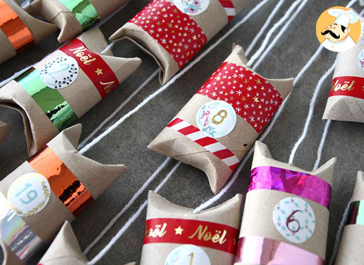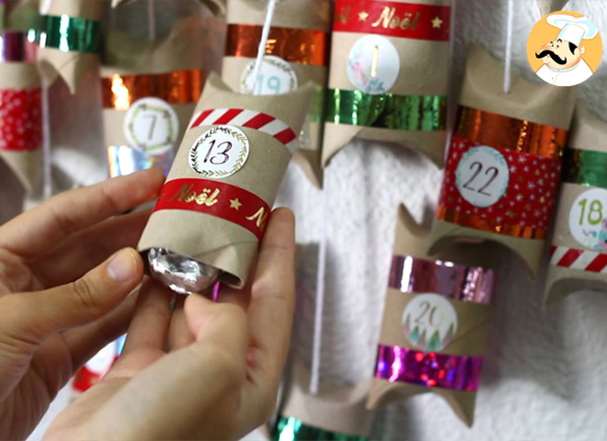 Ahora, sólo tienes que transformar los rollos en un divertido calendario! Además, si quieres preparar también los chocolates caseros, te facilitamos muchas ideas de recetas de trufas aquí y de recetas de bombones aquí :)