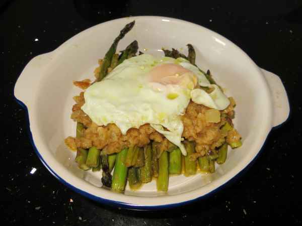 Bruschetta de espárragos trigueros con huevo de codorniz