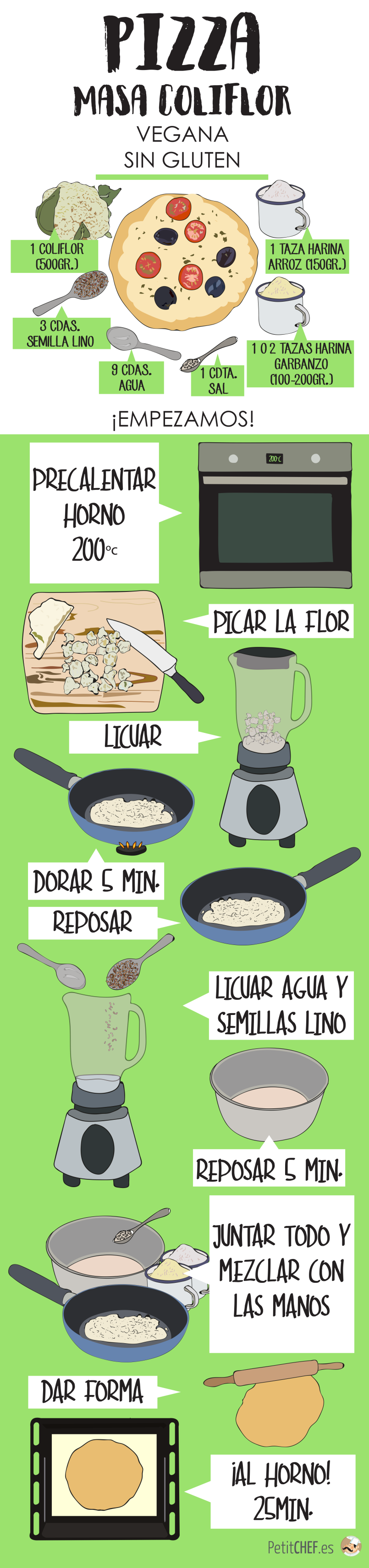Existen otras recetas de masa de coliflor pero que contienen huevo, por lo que deja de ser vegana u otras que contienen harinas aptas para celiacos aunque con demasiados aditivos no muy saludables.