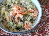 Ensalada de arroz con langostinos, calabacines y jengibre