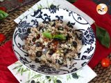 Reminiscencias mediterráneas en esta ensalada en la que combinamos el intenso sabor de los tomates secos con atún, aceitunas y, para elevar el conjunto añadimos unas notas cítricas con la ralladura de limón. ¡Una delicia!
