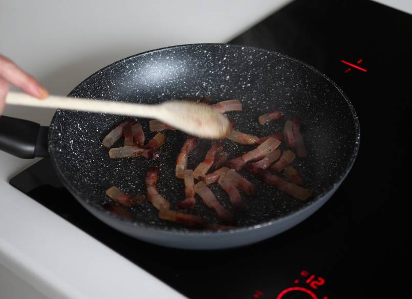Dorarlo en una sartén sin añadir nada de grasa. Estará listo cuando esté translúcido y ligeramente crujiente (cuidado de no pasarse).