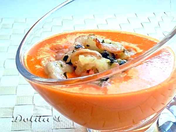 Contradictorio ya qu dice que el samlmorejo no lleva pimientos y luego da la receta de uno con pimientos de piquillo