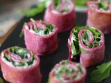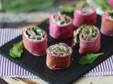 4. Rollitos de crepes de remolacha rellenos de ricotta y rúcula