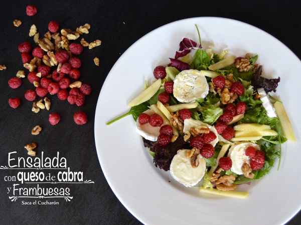 Ensalada con queso de cabra y frambuesas