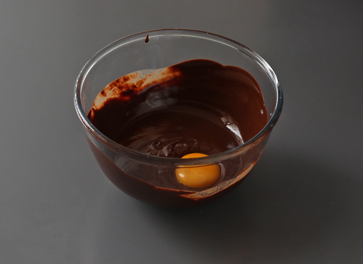 Incorpora la yema al chocolate derretido y mezcla bien.