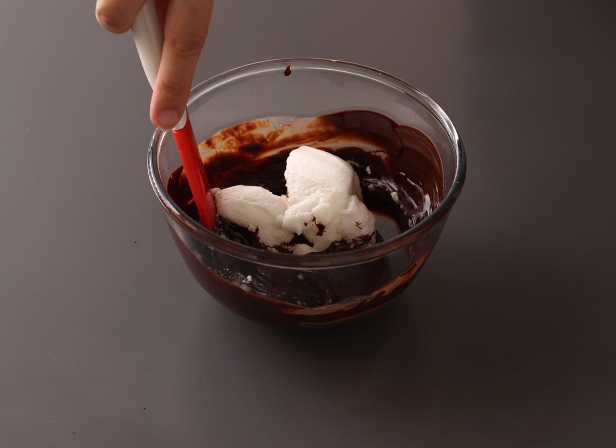 Agrega las claras poco a poco, con movimientos envolventes y delicados, preferiblemente con una espátula de silicona.