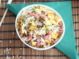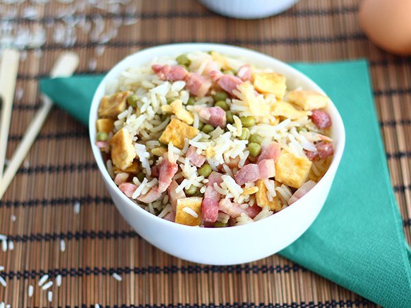Conocido fuera de China como arroz tres delicias, el arroz cantonés es una receta sencilla y rápida que ha conquistado paladares en todo el mundo. Se trata de arroz cocido, salteado en un wok con aceite caliente, al que se le añaden jamón, zanahorias, guisantes y huevos revueltos, entre otros ingredientes.