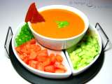 Esta mezcla nutritiva de verduras te hará sentir bien con tu cuerpo. Tomate, pepino, pimiento, agua, ajo, aceite, vinagre y sal. Tan simple y delicioso como eso! :) En algunos sitios, te pican un poquito de tomate y pepino por encima para que te lo comas a modo de guarnición.