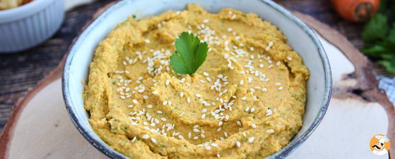 Nos encanta el hummus clásico, el de garbanzos. Pero, si buscas una alternativa más colorida y original puedes probar nuestro humos de zanahoria. Además de darle un toque de color el sabor es realmente delicioso. Acompaña este aperitivo con unas tostas de pan o con unos palitos de verduras y a disfrutar!