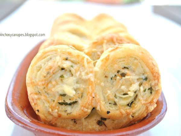 Palitos de hojaldre con pesto rojo y queso mozzarella