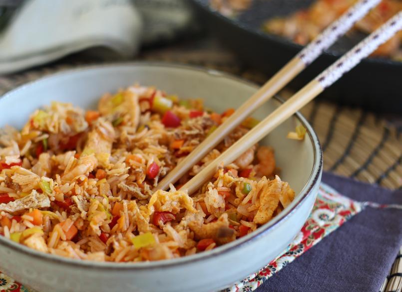El nasi goreng es la receta perfecta para convertir restos de arroz en un plato completo y lleno de sabor. Basta con saltearlo con verduras como zanahorias, puerros y cebolla, añadir un poco de salsa de soja y, si quieres, un huevo. Se transporta sin problema y se recalienta genial.