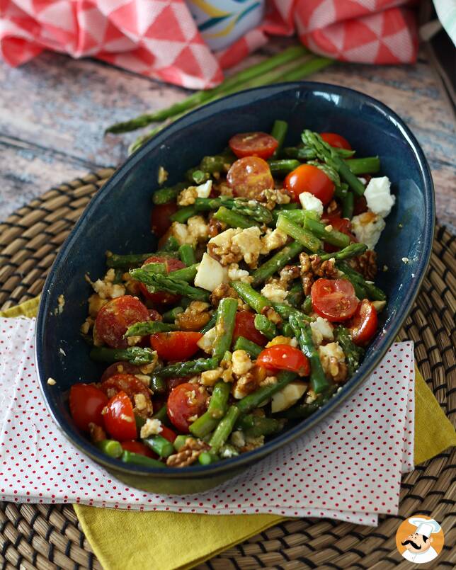 Receta completa ❘ Ensalada de espárragos, queso feta y nueces