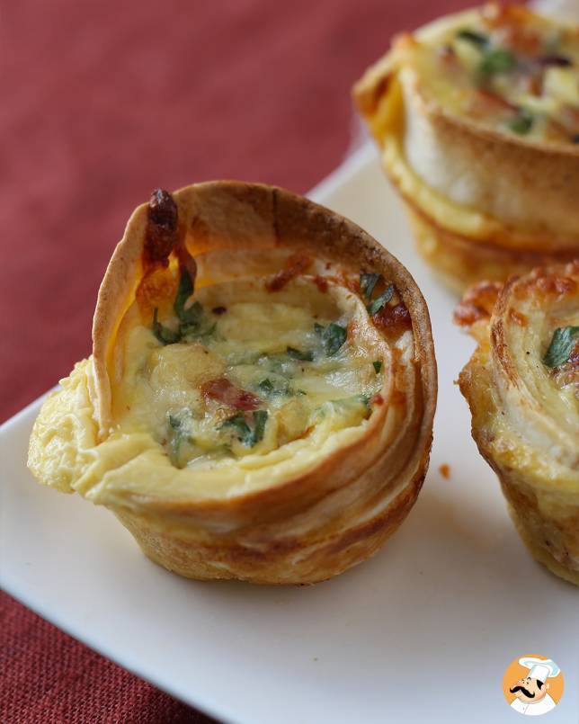 Fáciles y eficaces. Esta especie de mini quiches, con forma de muffins, preparadas con tortillas de trigo son una solución excelente. Listas en pocos minutos, se hornean rápidamente y se conservan bien durante varios días. Son ideales para organizar tu semana con platos prácticos, ya que puedes hacer varias de una vez y tenerlas listas para cenas ligeras, comidas en la oficina o incluso un aperitivo improvisado.