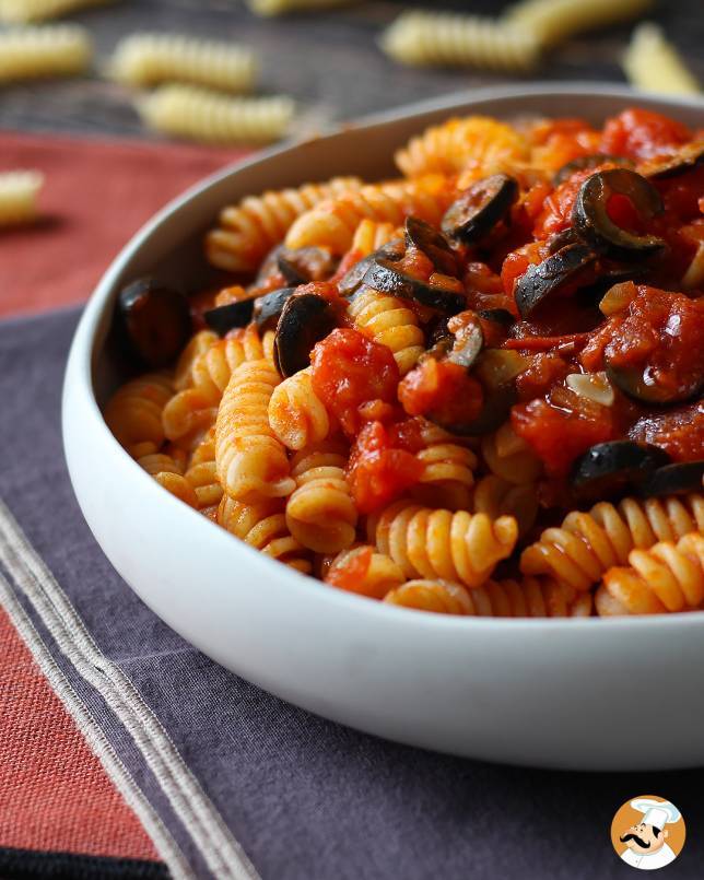 5. Pasta con aceitunas y salsa de tomate