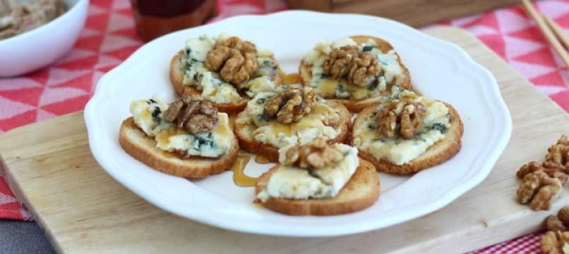 Receta completa imagen | Tostas roquefort, nueces y miel4. Torrijas