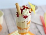 Helado de vainilla combinado con dos frutas de verano: melocotón y frambuesa. Una receta francesa que nació del ideario del famoso cocinero Auguste Escoffier como homenaje a una cantante de ópera y que llega igual de rica y sabrosa hasta nuestros días.